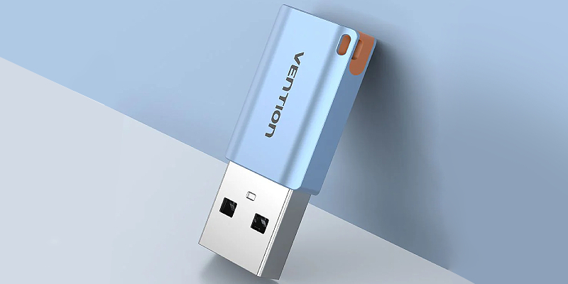 מתאם USB 3.1 Type-A זכר ל-USB-C נקבה מסגסוגת אלומיניום אפורה.