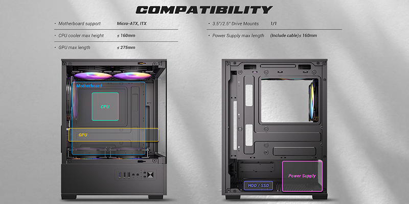 הפאנל השמאלי והקדמי של ה-VCX100M RGB ELITE מציעים תצוגה ללא הפרעה של המבנה שלך, ויוצרים חלון ראווה מדהים לרכיבים שלך.