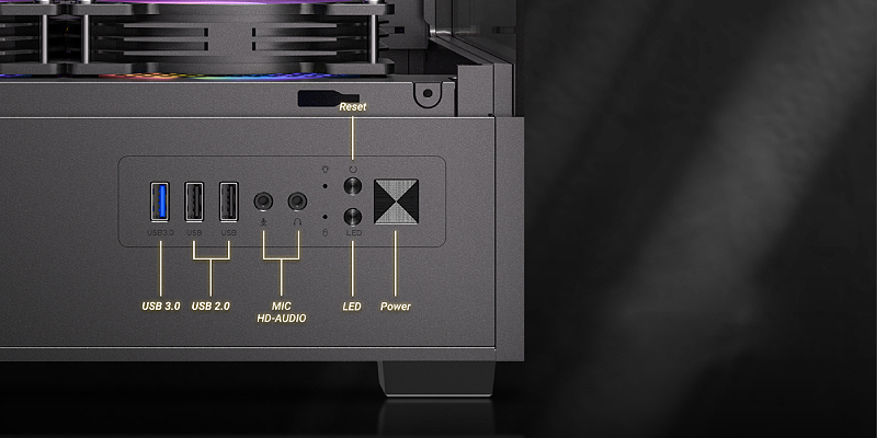 Power, Reset, LED Control Button, USB 3.0 x 1, USB 2.0 x 2, MIC/HD-AUDIO