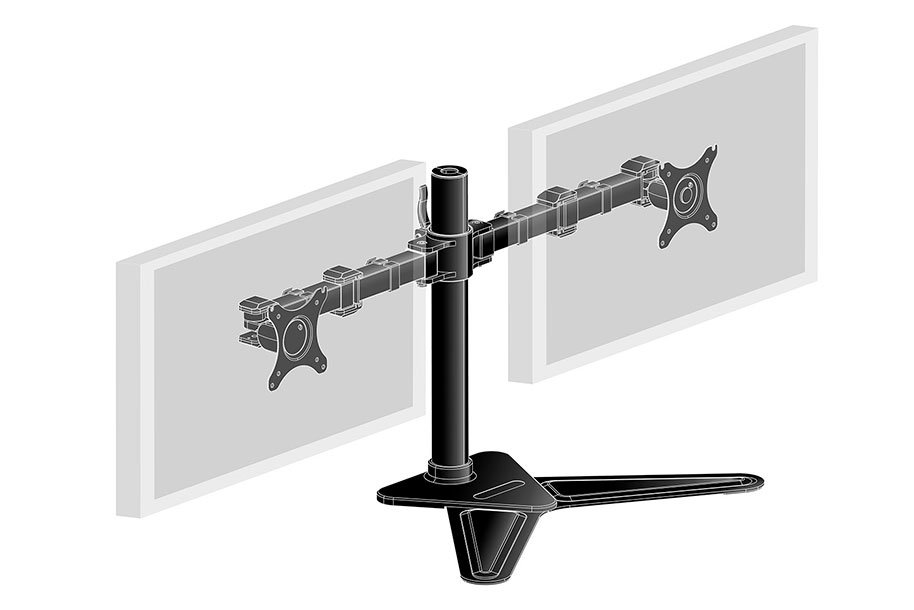 The iiyama DS1002D-B1 is a desk stand for two flat screens up to 30”. The monitor arm allows you to save space on your desk reducing the number of stands to one only and the cable management system makes it easier to keep your workplace tidy. The easy to set-up stand offers broad adjustment capabilities, including tilt, swivel, height and rotation, so you can easily adjust the position of both screens to your preferences assuring comfortable and healthy body posture.