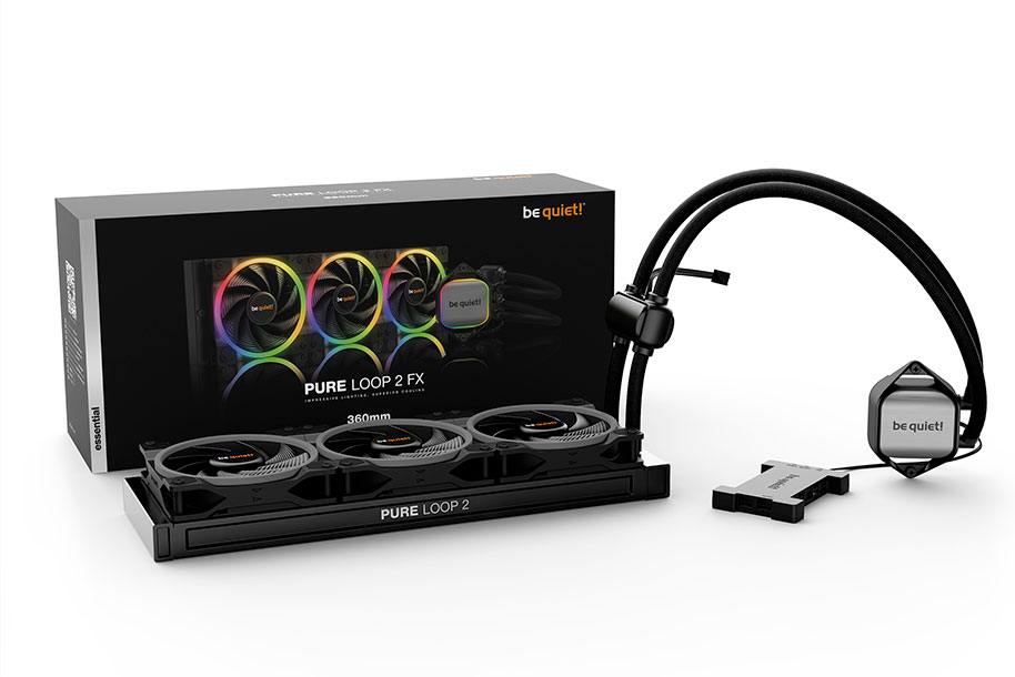 3 Light Wings PWM high-speed offer ARGB lighting at the front and rear. 18 ARGB LEDs give you many opportunities to individualize your PC build. This and the illuminated cooling block make Pure Loop 2 FX 360mm a highlight in any system.