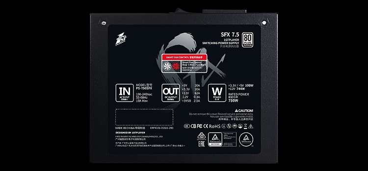 ה-1STPLAYER משתמש בספק הכוח פלטינום באמצעות LLC מלא כדי להשיג תפוקת הספק גבוה של 750W מאספקת הכוח SFX במכה אחת.