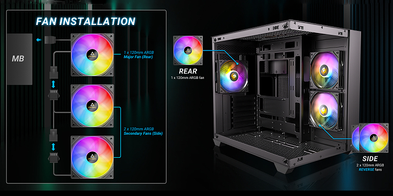 השתמש במאוורר הראשי כדי לשרשר את שני האחרים לסנכרון ARGB וליצירת סגנון מותאם אישית משלך.