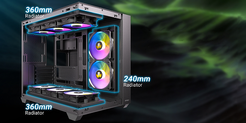 תומך בהתקנה בו־זמנית של רדיאטור עליון 360 מ"מ, רדיאטור תחתון 360 מ"מ, ורדיאטור צדדי 240 מ"מ.