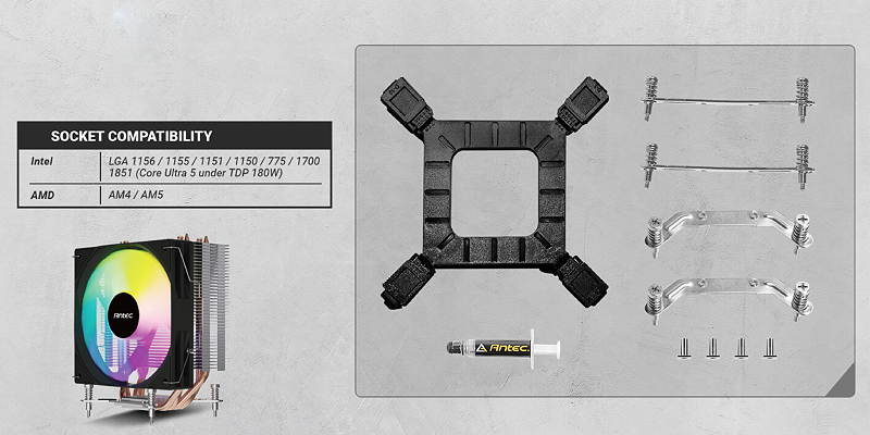עם זרימת אוויר מקסימלית של 62CFM, הוא מעניק ביצועי קירור יעילים למעבד.