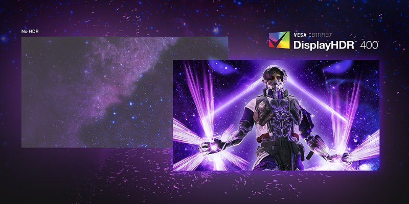 אישור תקן VESA HDR400 מבטיח תצוגת פרטים מדויקים ותמונה מציאותית במשחקים וסרטים.