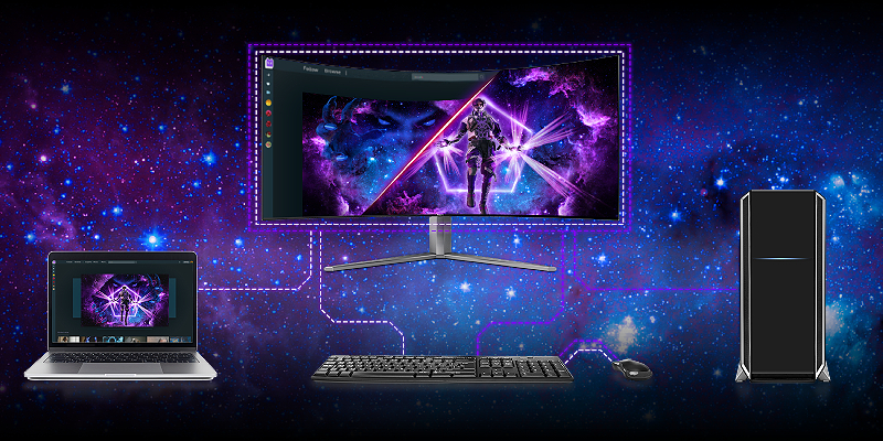 שתף מקלדת, עכבר ומסך יחידים בין כמה מחשבים שונים בעזרת מתג KVM מובנה.
