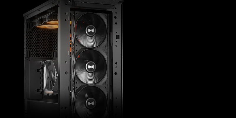 ניתן להתקין בקלות שלושה מאווררים או רדיאטור עד 360 מ"מ בקדמת המארז, ובחלקו העליון יש מקום לעד שני מאווררים או רדיאטור עד 240 מ"מ.