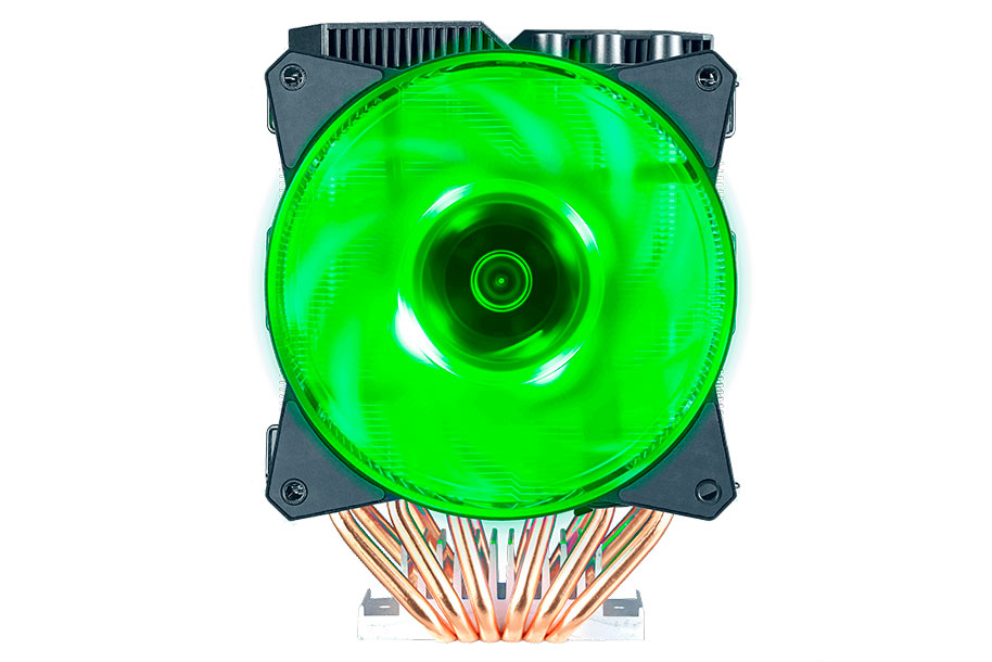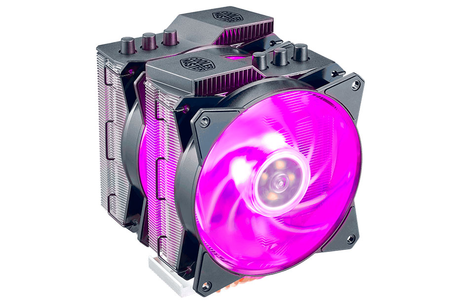 The dual tower heatsink has a combination of 2 sets of heatsink towers with 2 sets of MasterFan MF120R RGB. The uniquely designed heatsink allows bigger and more spread out surface area, while the MF120R RGB fans give added air pressure from the outside and inside the heatsink to generate massive cooling performance.