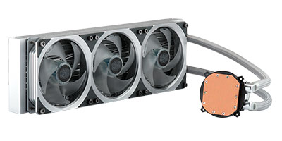 | LOW-PROFILE DUAL CHAMBER This MasterLiquid ML360P Silver Edition utilizes a low-profile, dual-chamber pump which works to enhance performance and has greater durability over the single chamber pump designs. |