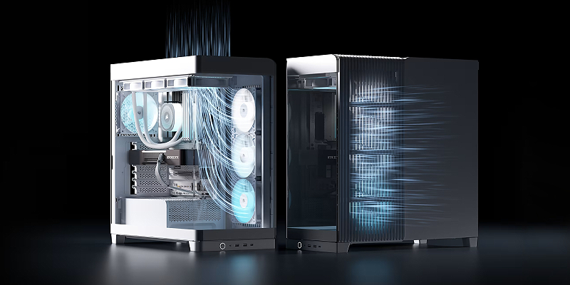 האוויר הקר נשאב דרך הצד ונכנס למארז ה-Mid-Tower המרווח, לקירור יעיל ושפע זרימת אוויר לביצועים מקסימליים.
