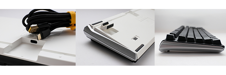 רגלי המקלדת הן דו-שלביות ומאפשרות להציב את המקלדת בשלוש זוויות הטיה שונות.