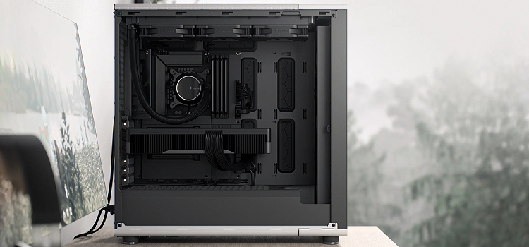 מארז מחשב North XL מבית Fractal Design בצבע שחור פחם, תומך ברדיאטורים קדמיים בגודל של עד 420 מ"מ וברדיאטורים עליונים בגודל של עד 360 מ"מ, מגיע עם שלושה מאווררי Aspect 14 PWM.