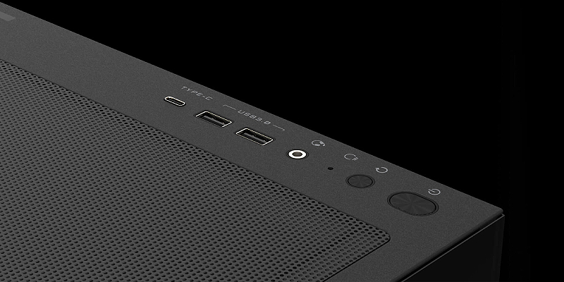 שני חיבורי USB 3.0, חיבורי אודיו, כפתור איפוס וכפתור הפעלה נגיש ונוח לשימוש.