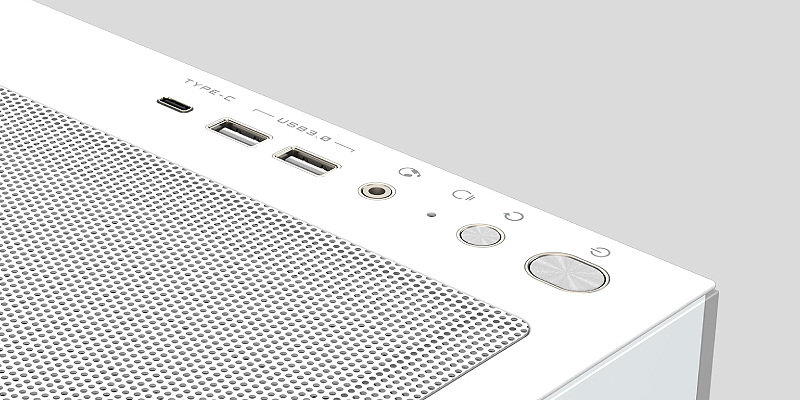 שני חיבורי ‎USB 3.0‎, חיבורי אודיו, כפתור איפוס וכפתור הפעלה נגיש ונוח לשימוש.