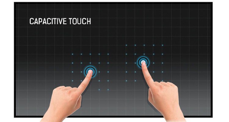 המגע מזוהה מכיוון שהמאפיינים החשמליים של רשת החיישן משתנים כאשר אצבע אנושית מונחת על הזכוכית.