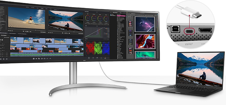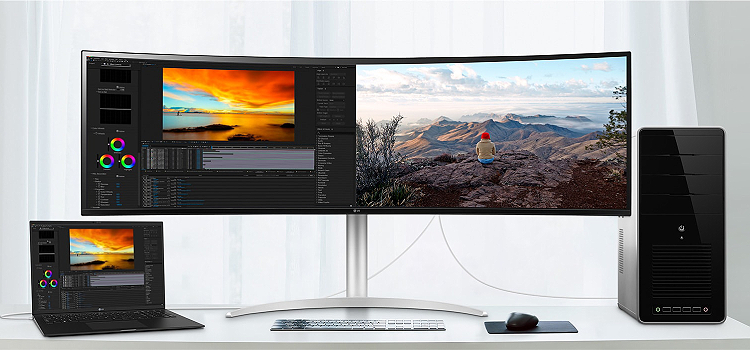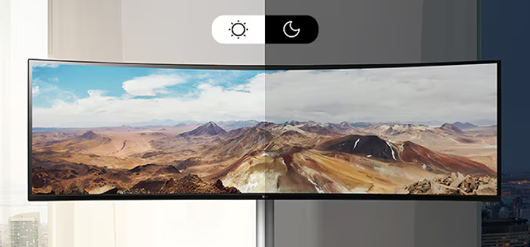 מסך UltraWide 32:9 Dual QHD (5120x1440) עם שטח פיקסלים כפול של 27 אינץ' 16:9 QHD במסך אחד.