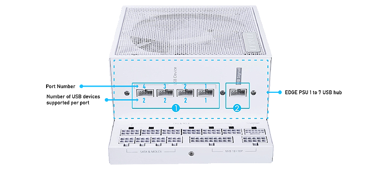 סדרת ה-Edge משלבת הרחבת USB פנימית של 4×9 פינים, המתפקדת כרכזת USB של 1 ל-7,