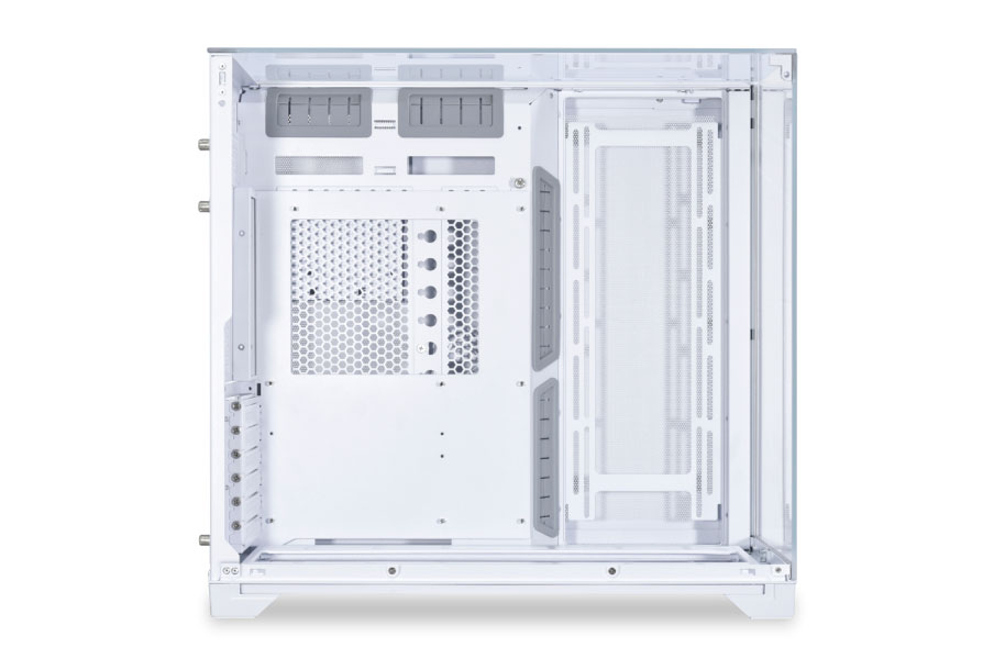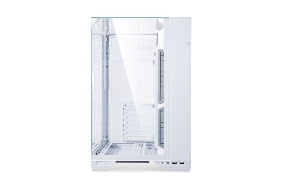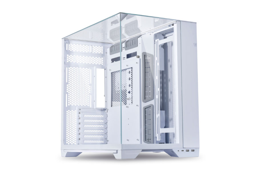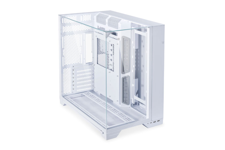 ian-Li O11 Vision White Aluminum Case. Three sides of column-less glass panels provide the most seamless view of components. Modular and toolless design panels and fan brackets ensure a friendly installation process. O11VW