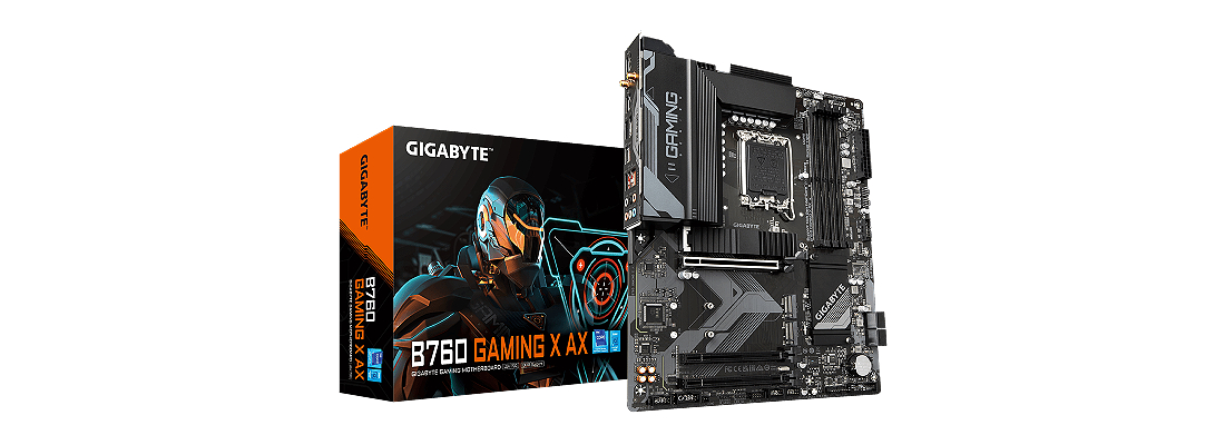 לוח אם B760 GAMING X AX מבית Gigabyte, עם זיכרון Corsair DDR5 Vengeance בנפח 32GB ודיסק Gigabyte AORUS 5000E SSD בנפח 1TB.