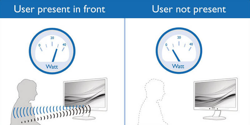 PowerSensor הוא 'חיישן אנשים' מובנה המשדר ומקבל אותות אינפרא אדום לא מזיקות כדי לקבוע אם המשתמש נוכח