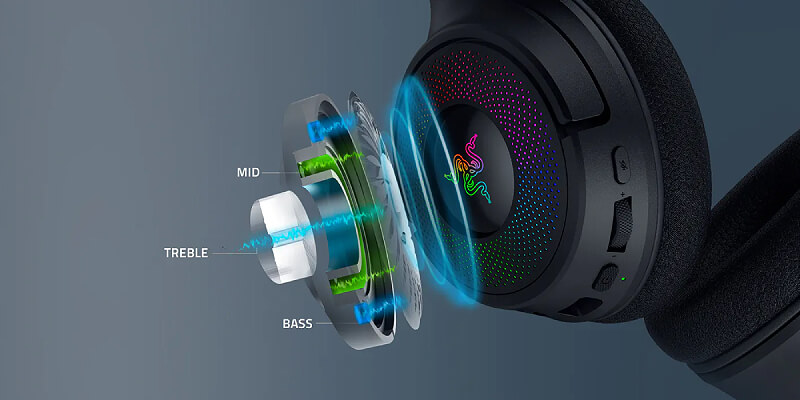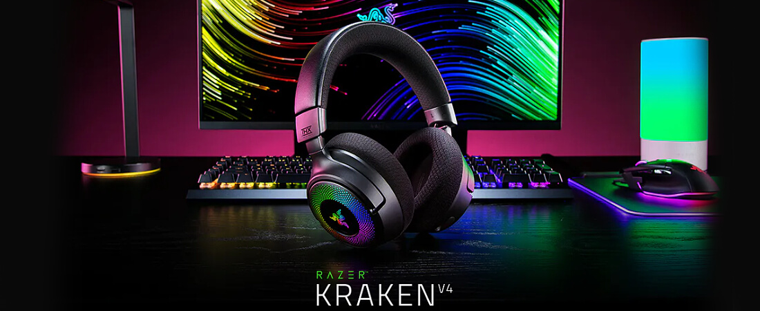שחרר את הגבולות עם Razer Kraken V4 - אוזניות גיימינג אלחוטיות המופעלות על ידי Razer Chroma™ RGB.