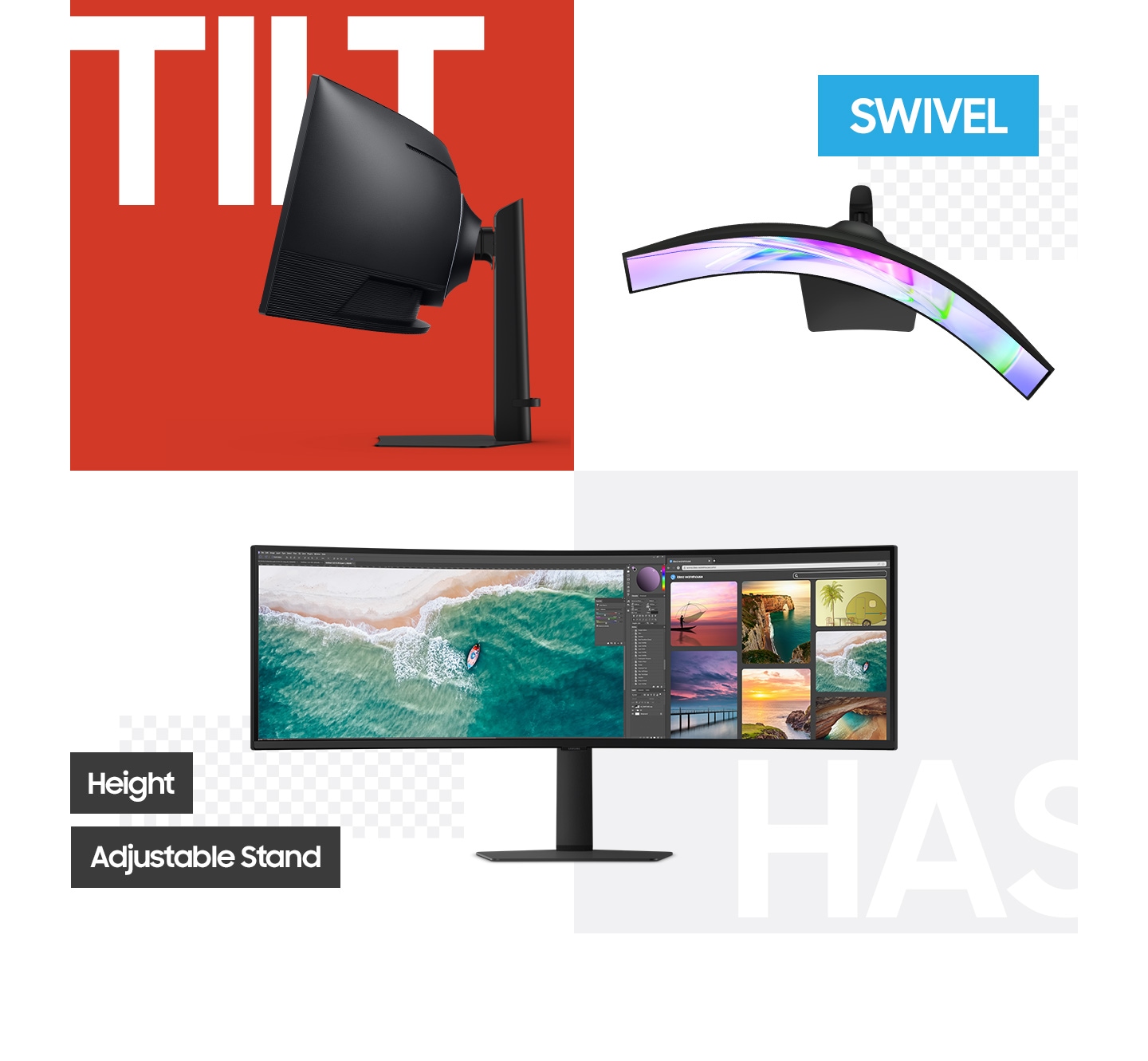 מסך קעור 1000R בגודל 49 אינץ' עוטף אותך ביחס רוחב-גובה של 32:9, התואם היטב את שדה הראייה שלך. אתה יכול לראות ולעשות יותר עם מסך רחב יותר ב-Dual QHD, ליותר פרודוקטיביות ביותר נוחות.