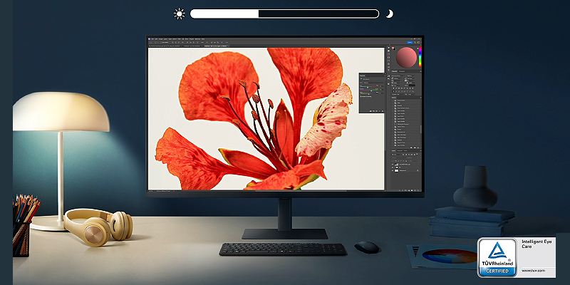 מוסמך TUV לטיפול חכם בעיניים, צגי ViewFinity מפחיתים הבהוב מסך ומגנים על העיניים מפני אור כחול מופרז עם מצב Eye Saver.