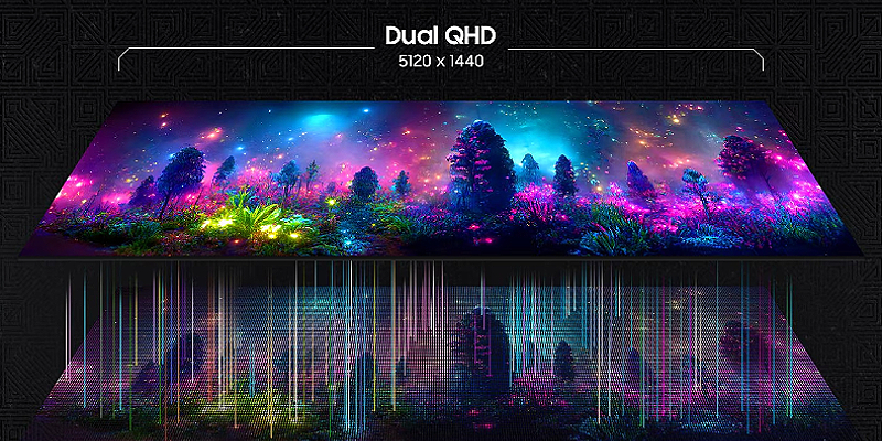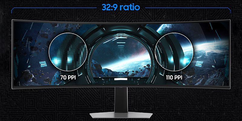 עם מסך רחב ביחס 32:9, ברזולוציית Dual QHD וצפיפות של 110 פיקסלים לאינץ',