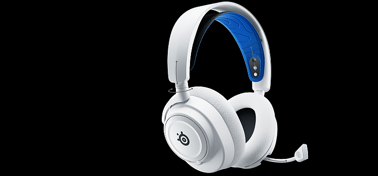 אוזניות קשת אלחוטיות לגיימינג Arctis Nova 7P מבית SteelSeries בעלות מיקרופון מובנה עם ביטול רעשים AI, דרייברים ניאודימיום מגנטיים, וטעינה מהירה של 15 דקות ל-6 שעות של שימוש.