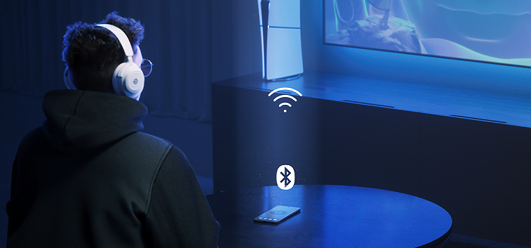 בזמן משחק על חיבור 2.4GHz עם אחזור נמוך, תוכל לשלב בחופשיות אודיו בלוטות' או שיחת טלפון ממכשיר אחר.