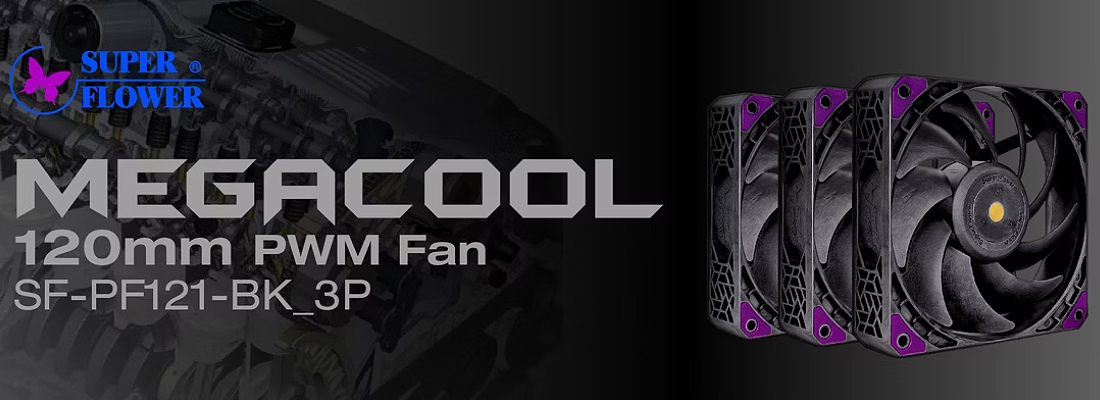 Super Flower Megacool 120mm 3pcs Pack Fans. SF-PF121-BK_3P Fan from MEGACOOL series ensures industrial-class performance and quality. Easily adjust the air flows through the PWM controller for the heat dissipation. It is one of your best choice for the PC setup while doing case fan installation.