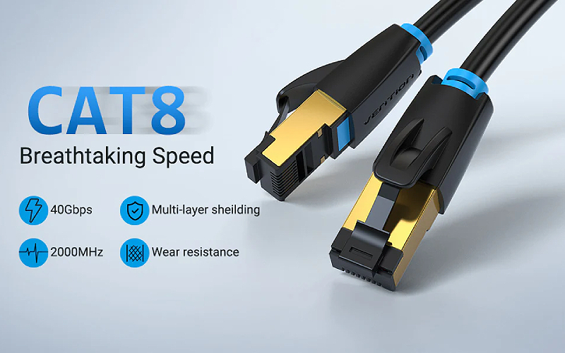 כבל רשת Vention CAT8 SSTP 40Gbps 2000Hz 28AWG Gold 15M