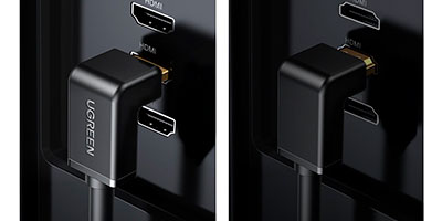 | Right Angle HDMI Cable Right angle design makes the cable better fits for wall-mounted devices, solving the embarrassment of limited spaces between wall and device. |