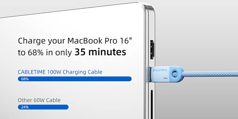 כבל הטעינה המהיר מטעין את ה-MacBook Pro 2023 שלך ל-42% תוך 30 דקות בלבד, ומספק מהירות יוצאת דופן כשאתה זקוק לה.