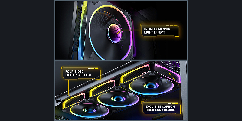 בשילוב עם אפקט מראת האינסוף שבמרכז הלהבים, נוצר אפקט תאורה מרשים ואינסופי.