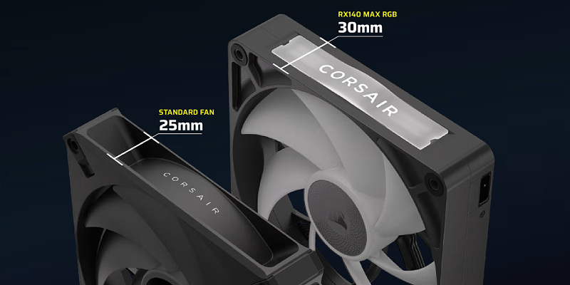 ב-30 מ"מ, מאווררי RX MAX RGB עבים ב-20% ממאוורר רגיל.