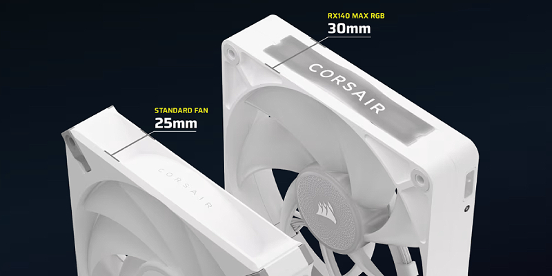 מאווררי RX MAX RGB ממנפים את ההנדסה והעיצוב של CORSAIR כדי למקסם את כל התועלת של עובי המאוורר המוגדל.