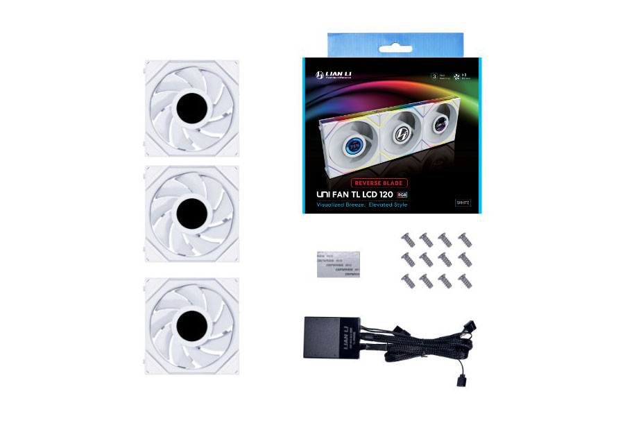 Elevate your PC setup with UNI FAN TL LCD black and white fans, available in 120mm and 140mm sizes with normal and reverse blades.