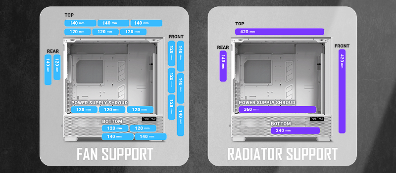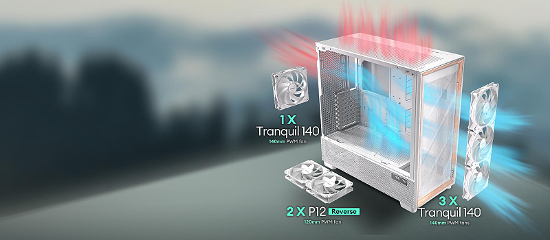 Pre-Installed Fans: Front 3x140mm & Rear 1x140mm & Reversible Bottom 2x120mm