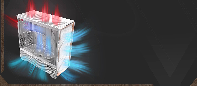 עיצוב אוורור רב-כיווני, הכולל פתחי אוויר נרחבים בתחתית, בתא ה-PSU והצדדים,