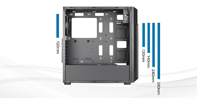 פוטנציאל קירור מצוין עם תמיכה ברדיאטור בגודל 280 מ"מ.