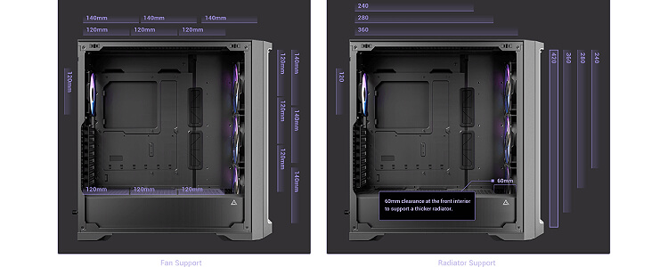 תומך ברדיאטורים של 360 מ"מ בחזית ובחלק העליון בו זמנית.