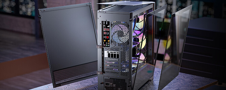 הפאנל השמאלי עשוי זכוכית מחוסמת להצגת בניית המחשב בצורה טובה יותר.