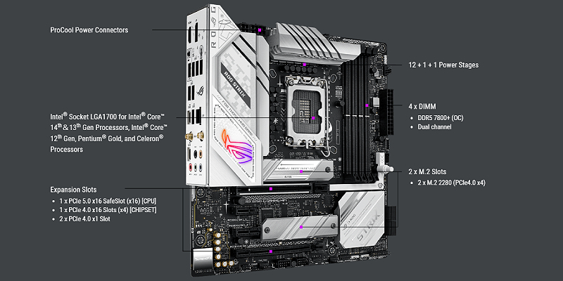 הוא כולל קישוריות מהירה, אך מוסיף זיכרון DDR5 מהיר ושלבי כוח מחוזקים — המשלימים את הביצועים של מעבדי Intel מדור 14.