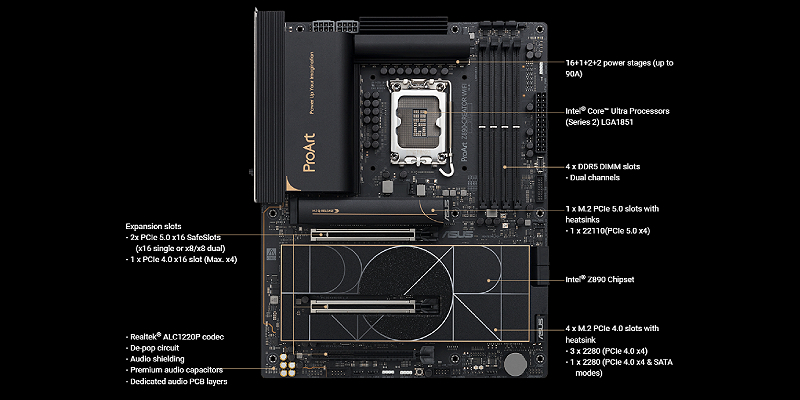 לוח האם ProArt Z890-CREATOR WIFI מעצים יוצרי תוכן בכל הרמות, וממצה את מלוא הביצועים של מעבדי Intel® Core™ Ultra (סדרה 2) החדשים.