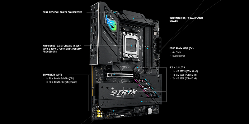 ה-ROG Strix B850-F Gaming WiFi בנוי כדי לשלוט במעבדי AMD Ryzen™ 9000 Desktop Series.