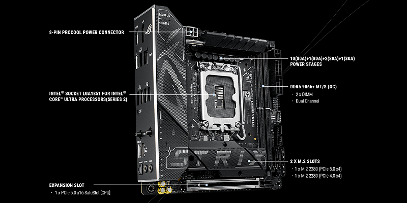 ה-ROG Strix B860-I Gaming WiFi תוכנן למעבדי Intel® Core™ Ultra (סדרה 2).