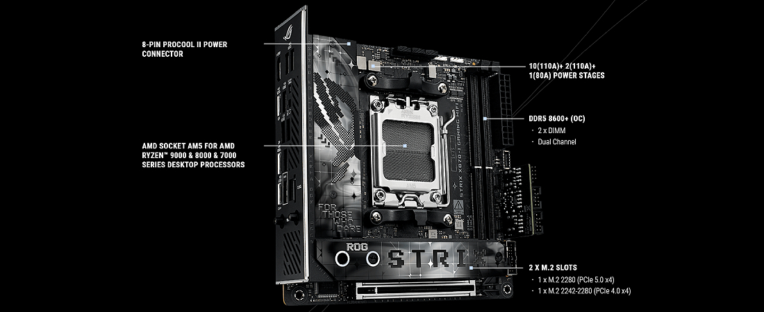 לוח האם ROG Strix X870-I Gaming WiFi משלב טכנולוגיה מתקדמת בלוח mini-ITX אלגנטי, משופר על ידי ROG Strix Hive II לשליטה יעילה.