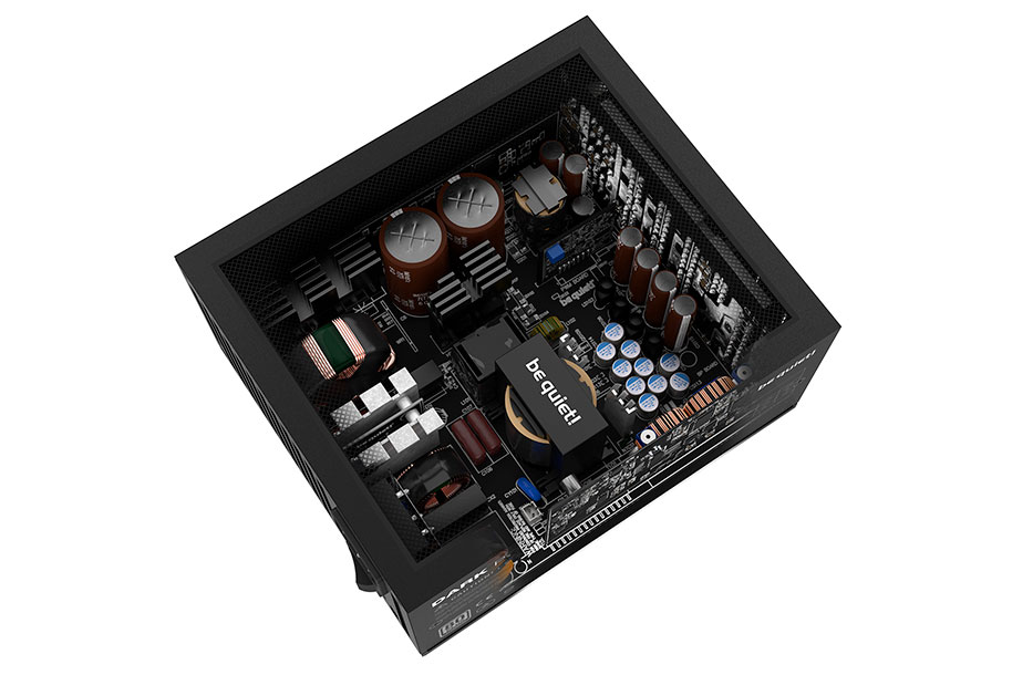 The split fan inlet of the Dark Power 12 850W is a custom-shaped funnel that increases airflow while reducing unwanted turbulence. The wire-free design inside allows the cool air to reach all components flawlessly which ultimately leads to a longer lifespan.